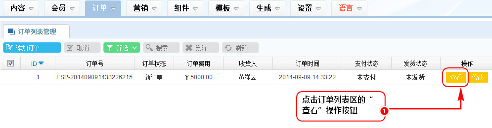 1、在訂單列表管理區(qū),點擊訂單列表區(qū)的“查看”操作按鈕,或者雙擊需要查看的訂單列表;
