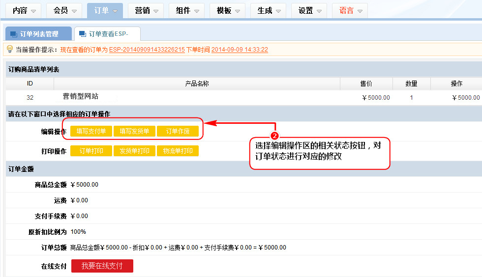 2、要出來的訂單查看窗口中,選擇編輯操作區(qū)的相關(guān)狀態(tài)按鈕,對訂單進行對應(yīng)的修改;