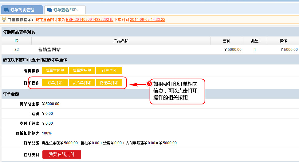 3、如果要打印訂單相關(guān)信息,可以點擊打印操作的相關(guān)按鈕。