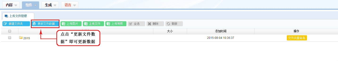 3、說明:更新文件數(shù)據(jù)所更新的文件夾路徑,為當(dāng)前所查看的列表路徑。