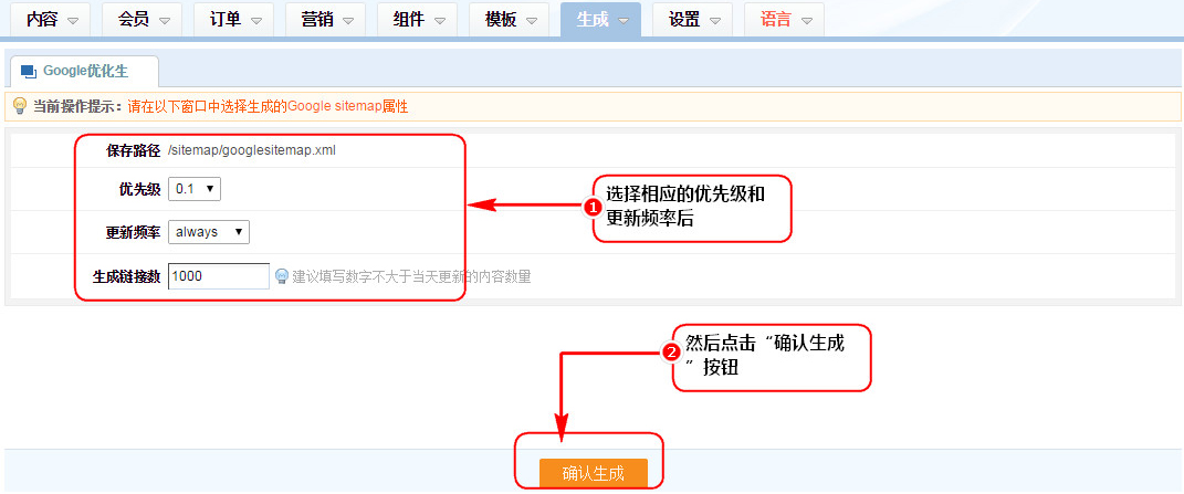 具體操作方法為:選擇相應(yīng)的優(yōu)先級和更新頻率后,然后點(diǎn)擊“確認(rèn)生成”按鈕。