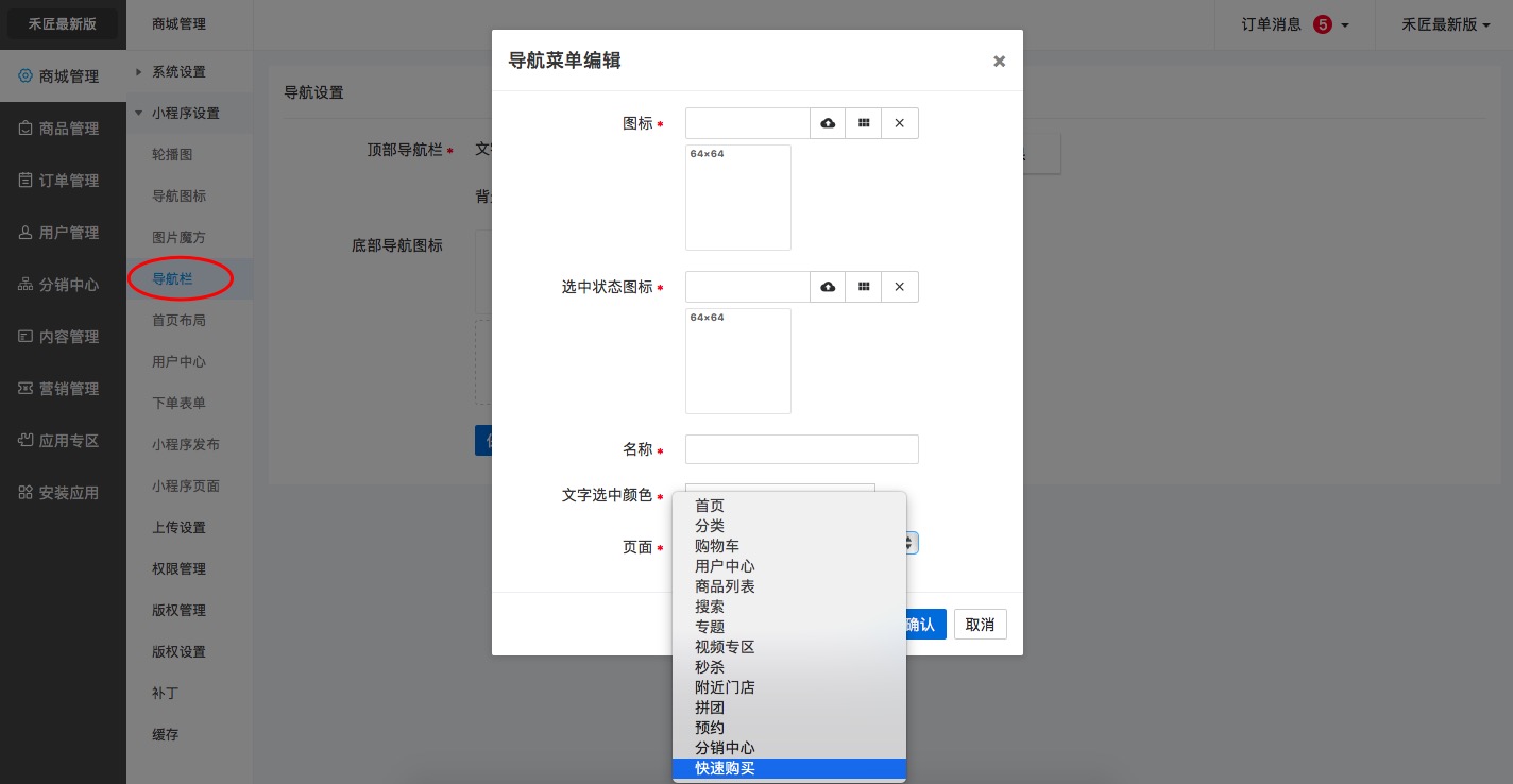 1.“導航欄”(小程序首頁底部菜單)