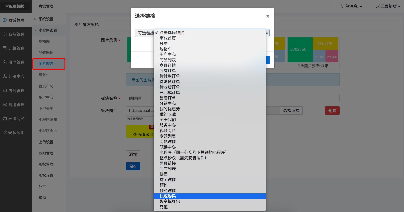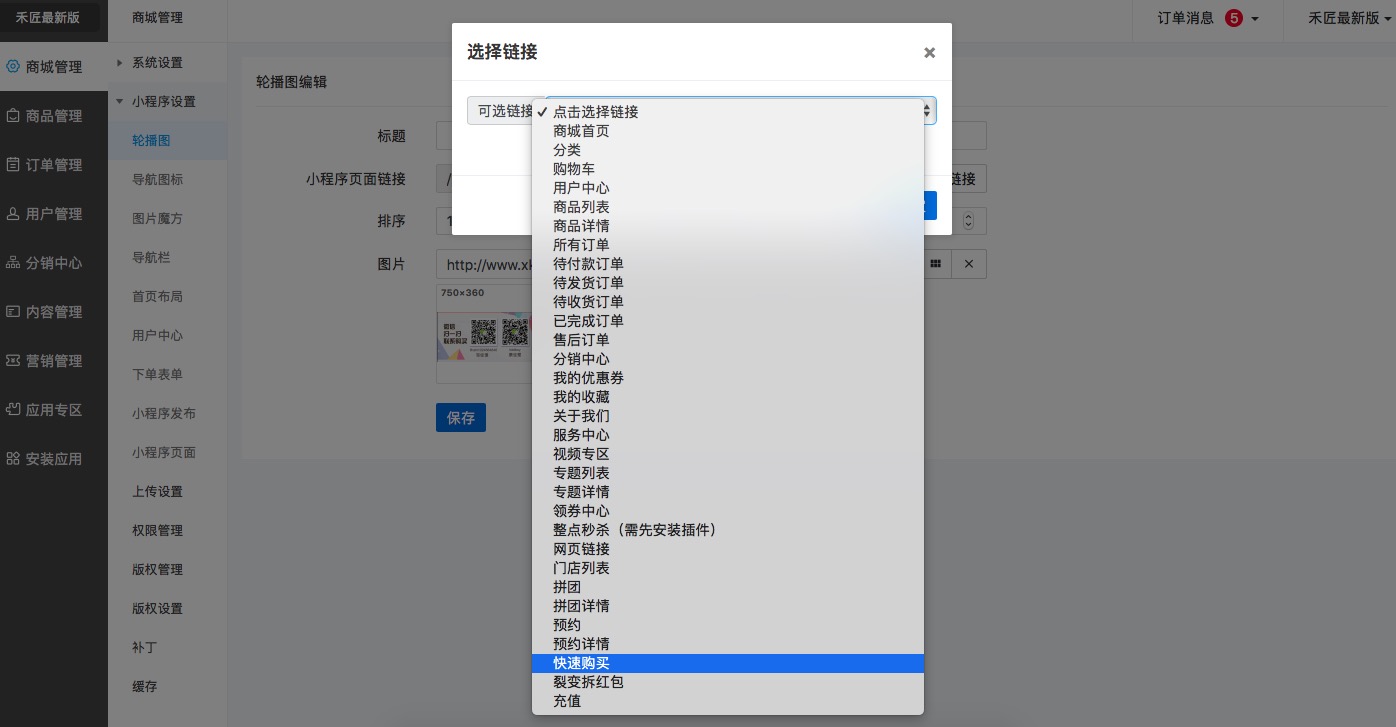 2.可以在“首頁輪播圖”鏈接到快速購買頁面