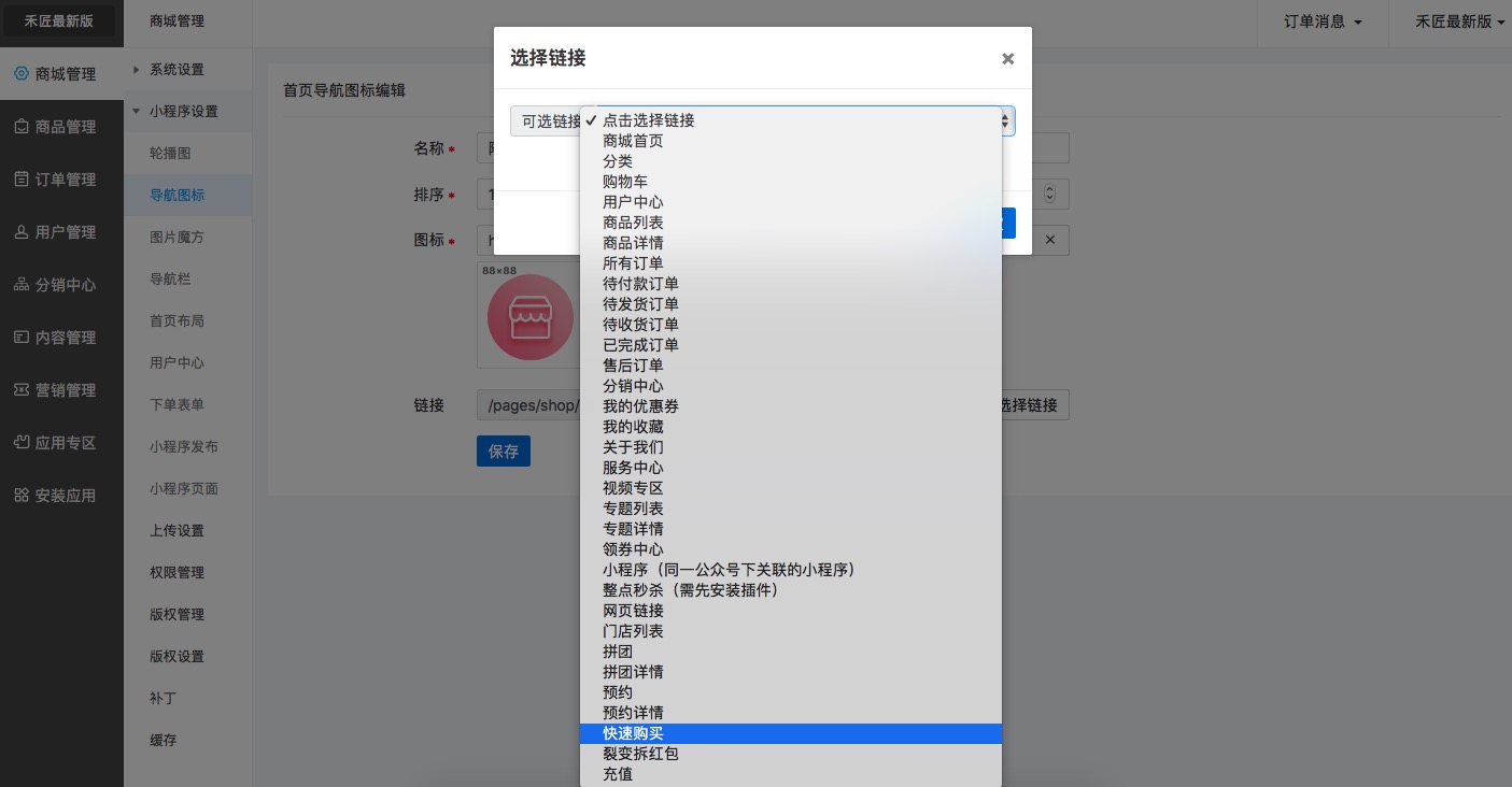 3.可以在“首頁圖標”鏈接到快速購買頁面